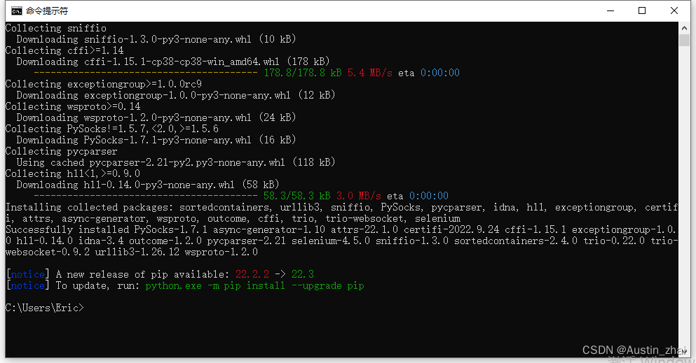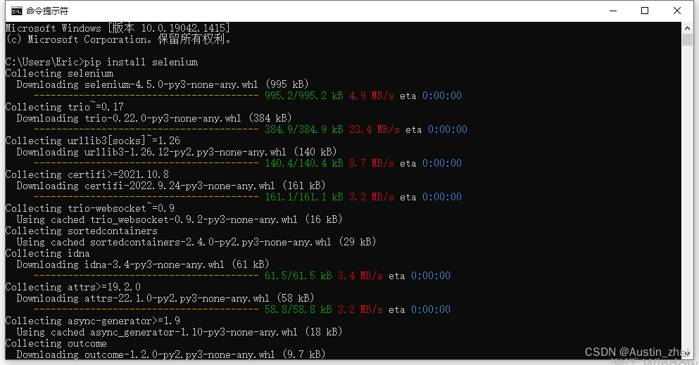 第一种是使用pip命令进行selenium的安装,首先在cmd窗口中输入pip install selenium,静待安装成功即可。