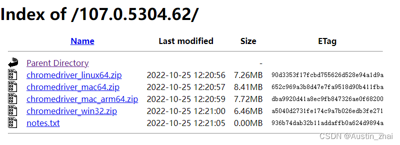 如果在WebDriver网站中找不到你的浏览器版本,或者最末尾的文件版本都小于你的浏览器版本,不要怀疑,就是你的浏览器太新了。WebDriver的更新也需要时间,要么等要么就换一个版本吧。