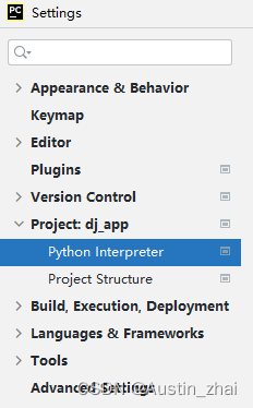 在Project:XXX (XXX是你的项目名)中选择Python Interpreter