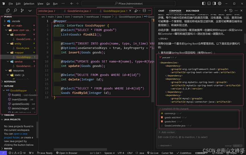 如果不喜欢这里的调试环境可以在AI生成完代码就用 idea打开刚才生成的项目