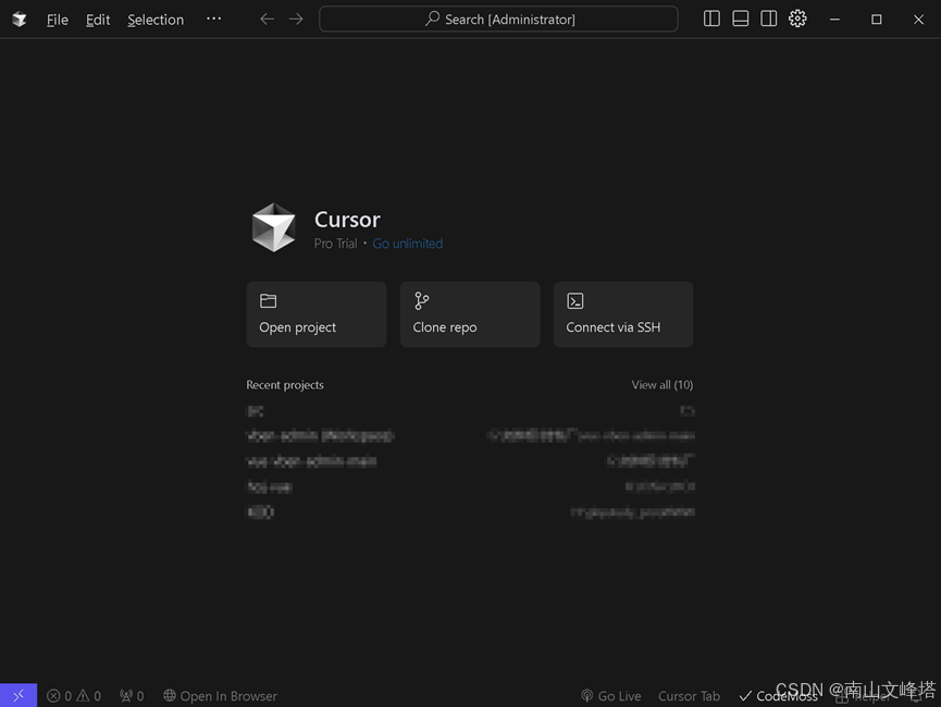 3.5 登录之后,就进入了Cursor首页,整体样式与VSCode相同