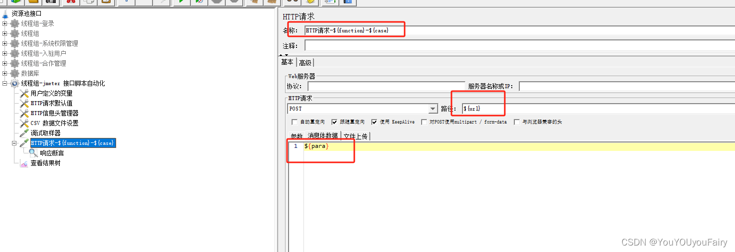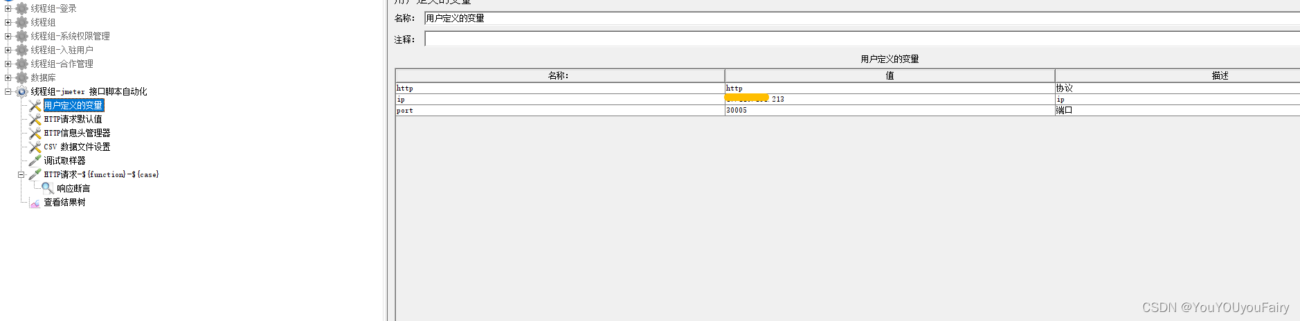 1、创建线程组,定义自定义变量,保存请求默认值。3、使用csv文件读取测试用例。2、用csv编写测试用例。4、创建http请求。