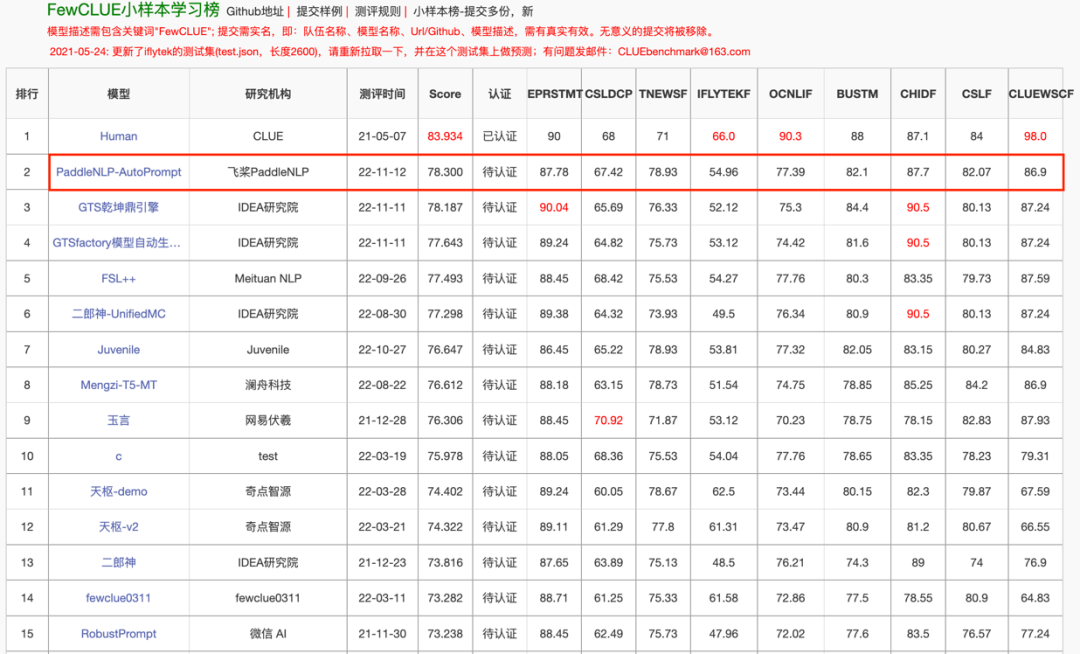 PaddleNLP登顶FewCLUE小样本学习榜单;AutoPrompt自动化提示功能直接带你原地起飞