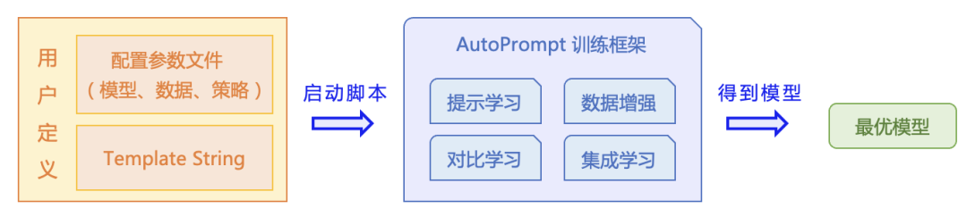 自动化:只需要准备相应格式的数据,定义模型、数据、策略的配置参数,以及 Template String 文件,即可一键运行。AutoPrompt 框架可自动从定义的 Template String 中选择最佳 Prompt,保存效果最优的模型。