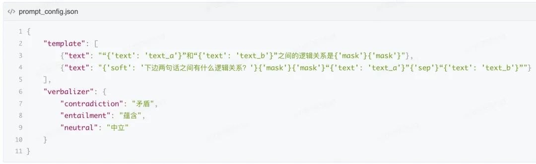 在 PET 搜索得到的最优提示后,可通过修改 Template String 切换为连续型提示学习算法,用相应的提示词初始化连续型提示向量。在此基础上增加 LSTM 编码器学习提示向量之间的序列关系可以进一步提升模型学习效果。以上修改均可通过配置文件实现。