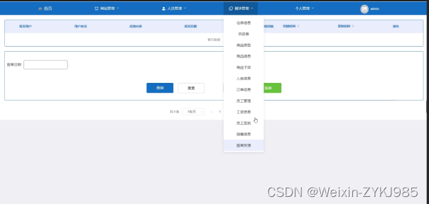 本系统有管理员和用户两大功能模块,实现管理员:首页、网站管理(轮播图、超市公告)人员管理(管理员、会员用户、员工用户)模块管理(仓库信息、供应商、商品类型、商品信息、商品下架、入库信息、订单信息、员工管理、工资信息、员工签到、销售信息、留言反馈)个人管理等操作。