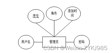 管理员实体主要存储管理信息包括序号、用户名、密码属性。管理员信息属性图如图4-4所示。