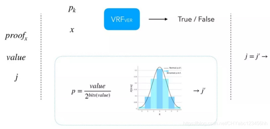 - 将这个值和之前VRF生成的和一起,广播给其他人,其他任何收到的用户结合广播者的公钥以及全网都知道的值,则可以验证以下两个条件是否成立: