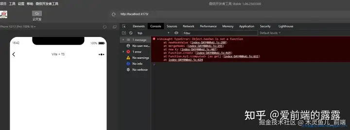 我们通过vite自带的preview命令来预览dist文件,在微信开发者工具打开网页,可以看到还是报错: