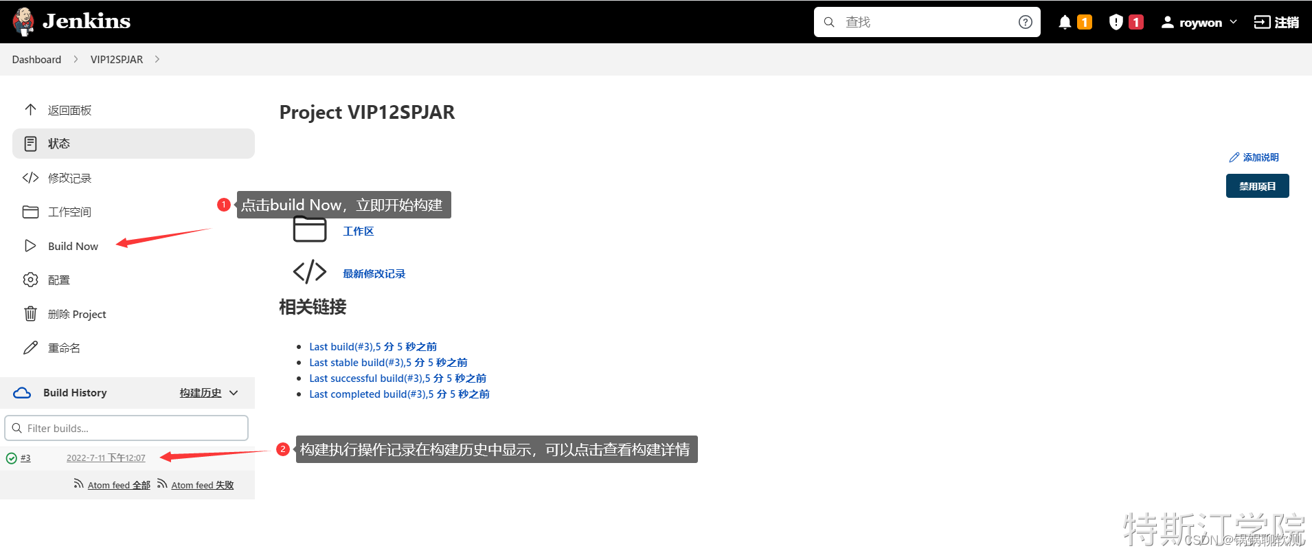 完成构建任务所有流程配置之后,保存构建任务,将回到构建任务操作菜单。