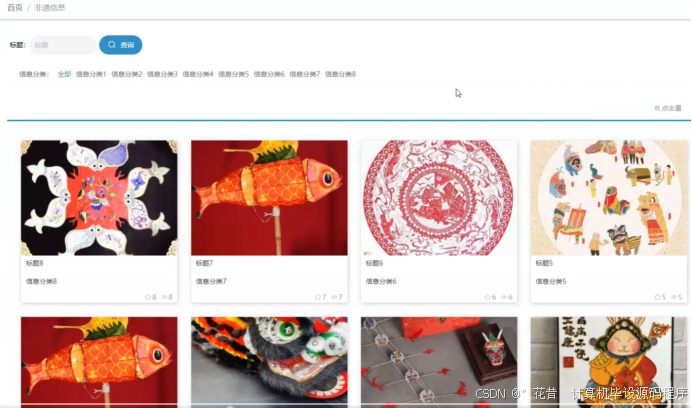 非遗信息展示:用户可以在非遗信息页面通过标题查询,查看非遗信息的详细内容。