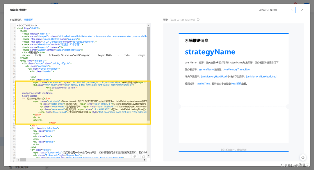 2.自定义「API运行引擎预警」邮件模板