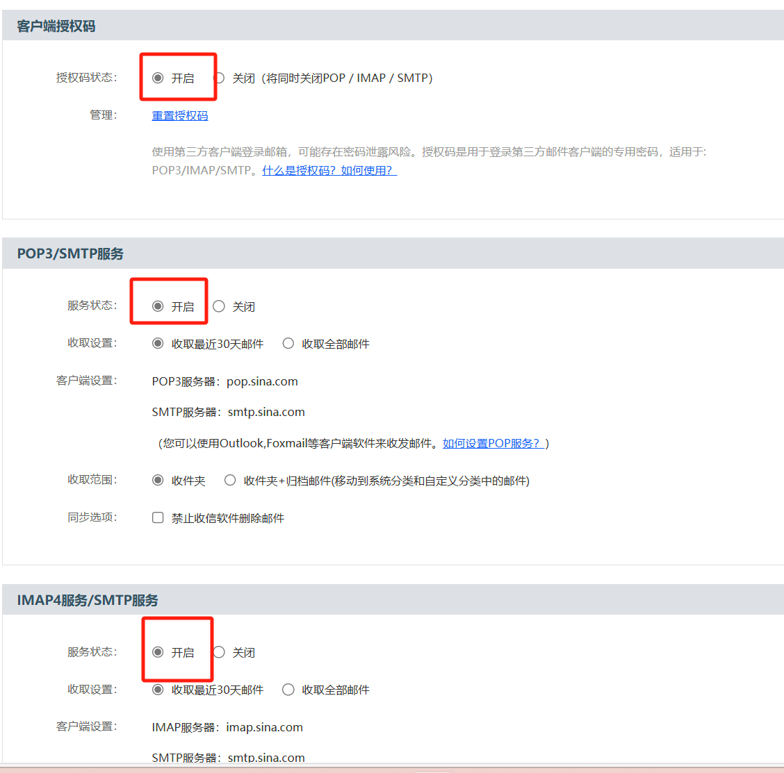 到这儿,新浪邮箱的SMTP服务便配置好了。