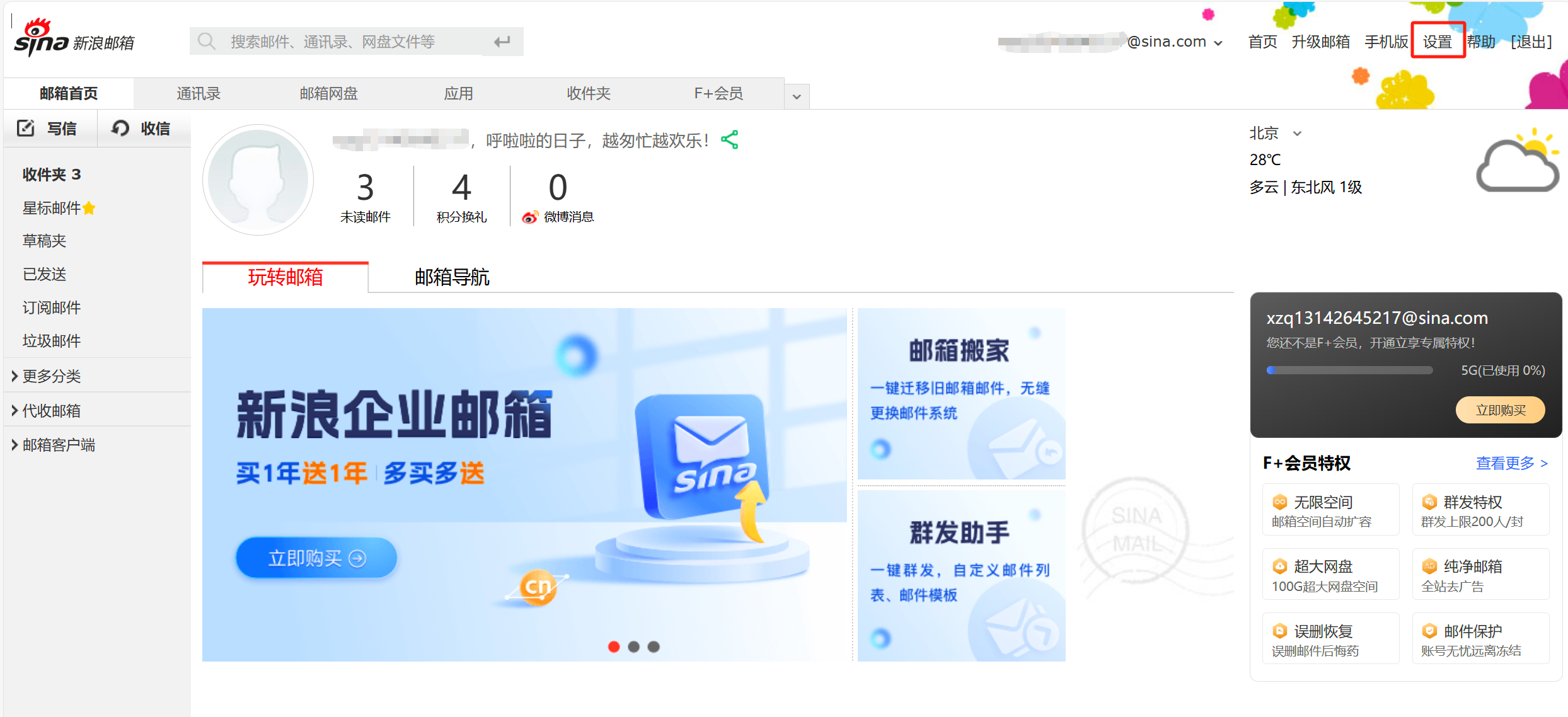 与网易邮箱SMTP服务配置流程类似,首先在主页中点击设置按钮