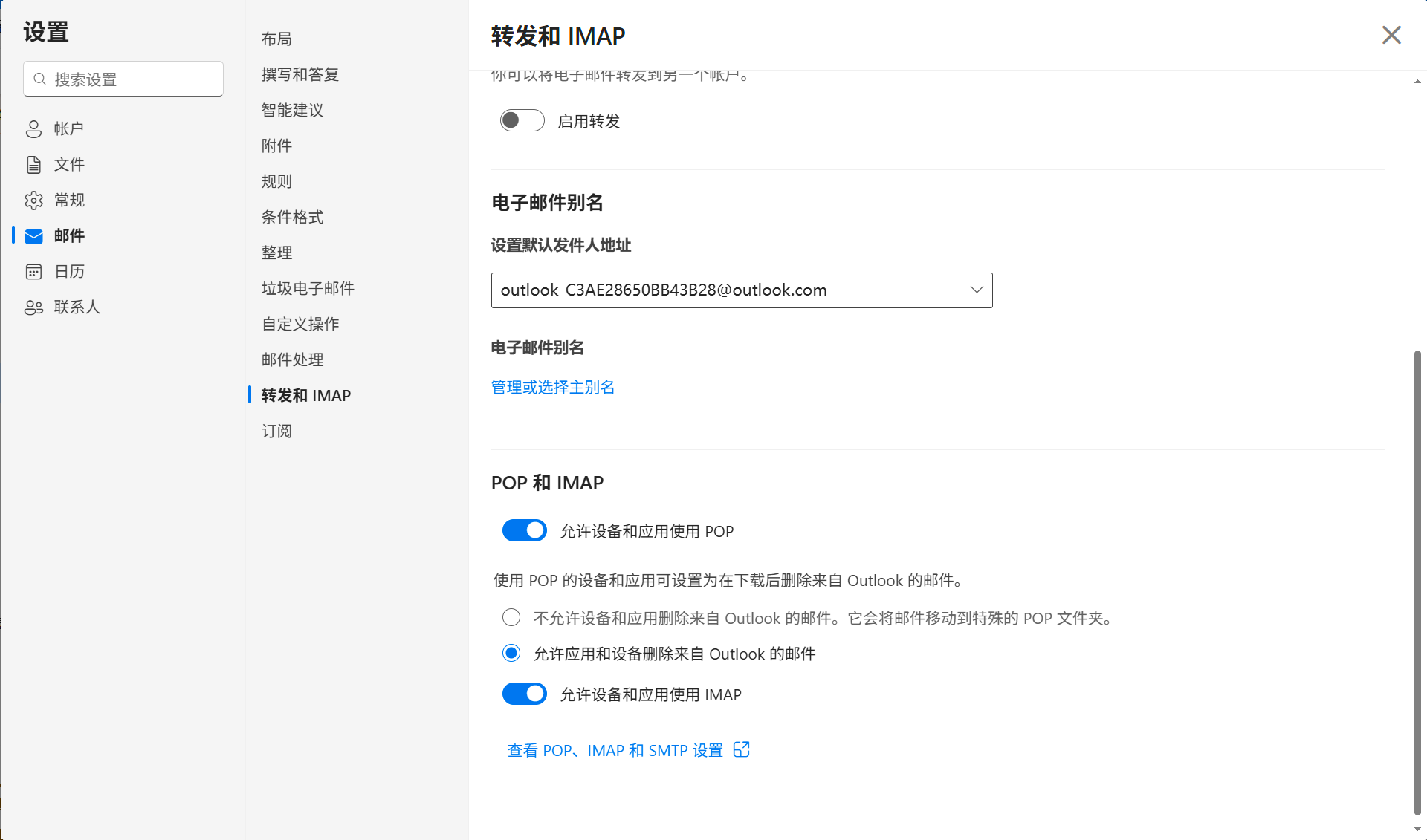 弹出的界面中点击转发和Imap并允许设备和引用使用POP与IMAP