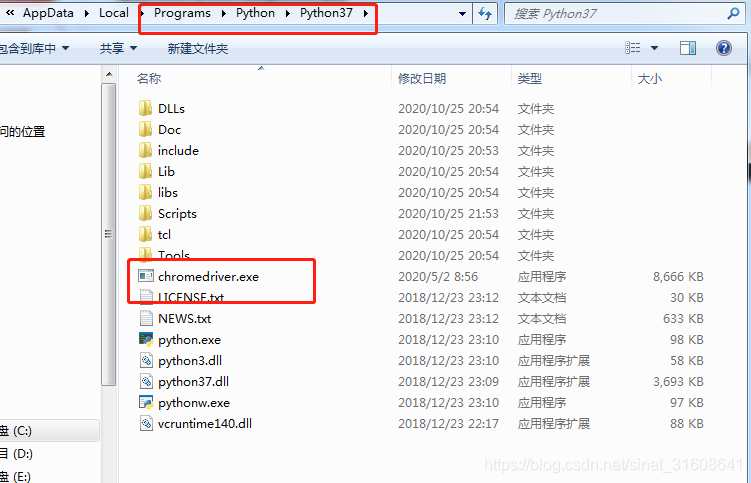 5、下载chrome driver放到 记得放在Python/Python37目录下,具体下载请参考博客安装selenium与chromedriver