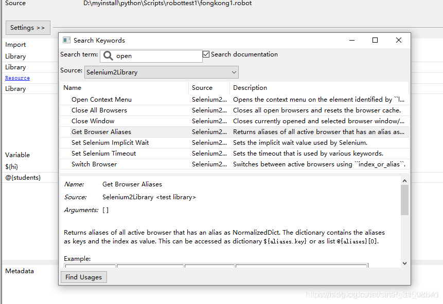 这里有个小bug,Robotframework导入Selenium2Library库后缺少“Open Browser”关键字