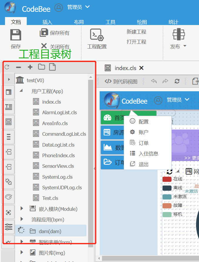 用户目录树是由用户自行建立,同时也是工程编辑的入口,用户通过目录配置页面路由。串联相关功能。同时一些个性化的定义也有此导入。