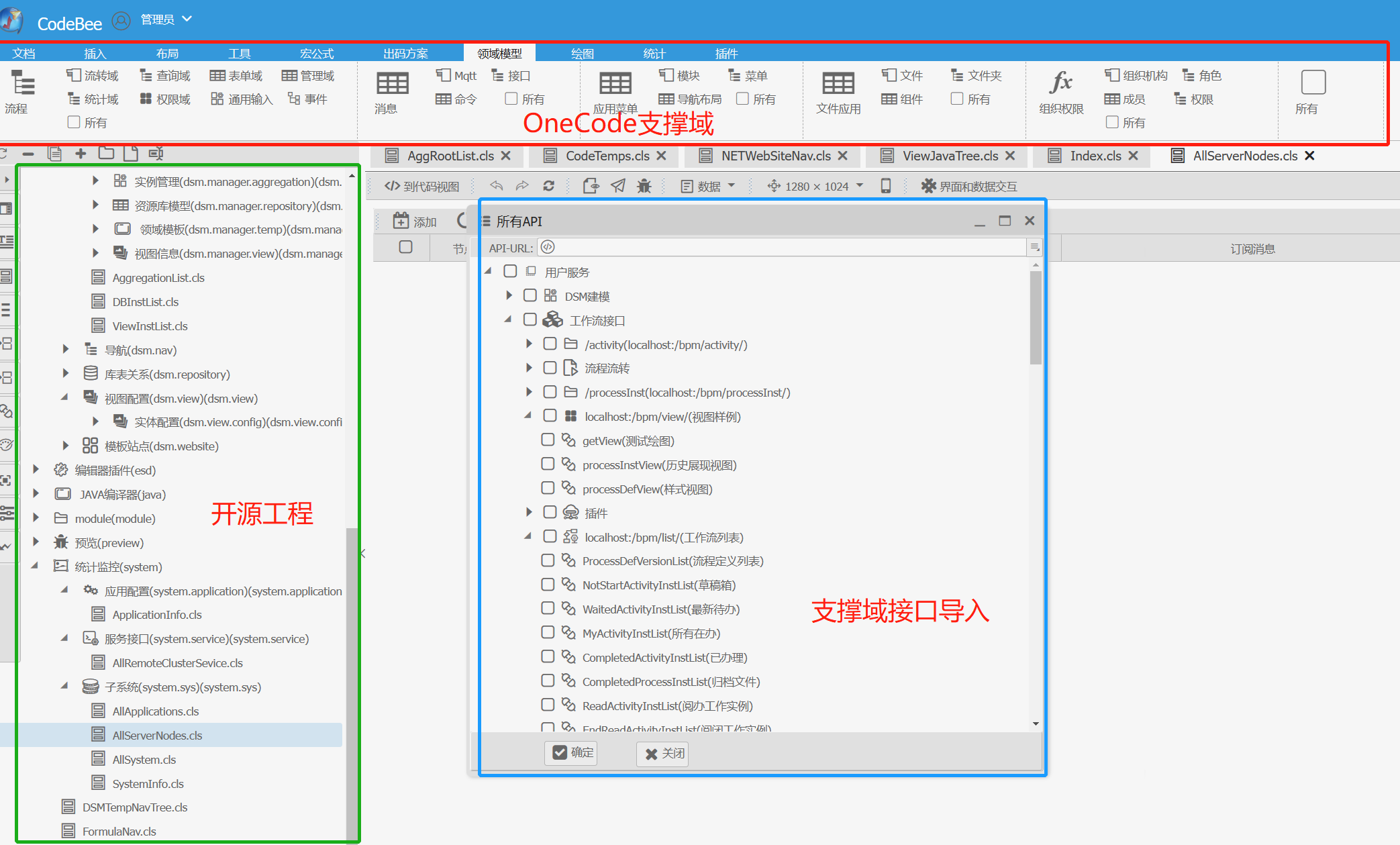 支撑域是企业核心中间件的核心逻辑层。是低代码应用中必不可少的接入集成。这需要通过中台获取开放的接口的描述时,能够快速的参数化相关应用,通过聚合能力接入低代码平台,而在部署打包时又可以通过特定语言的出码设置,编译为特定环境的适配代码完成应用户核心支撑与的紧密结合。