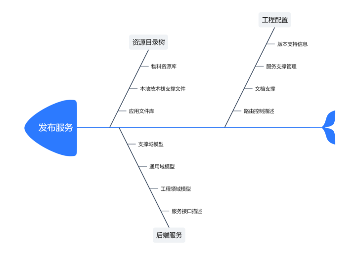 工程发布,需要三方面的资源做支撑,分别是用户通过设计完成的页面及功能交互,通过特定的特定的出码模板完成相应的技术栈前端转换形成的前端页面目录。而后端应用则根据则是用户通过基础数据建模形成的领域模型文件,这些领域模型文件通常会按照,资源库、支撑域工程域等模型方式来独立打包方便后期版本管理及个体更新。另外第三块则是方便工程启动运行以及访问控制,对外暴露监控等相关的工程配置信息。