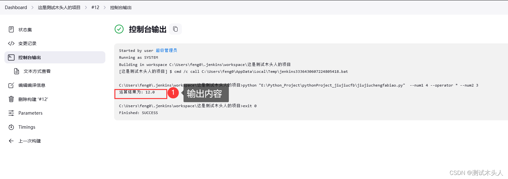 注:走到这一步,恭喜你学会了基本的jenkins代码执行,如果想要继续学习先去看python的argparse模块和argparse模块示例,也可以直接看argparse模块示例进行代码照搬,会搬砖也是一个技术活。