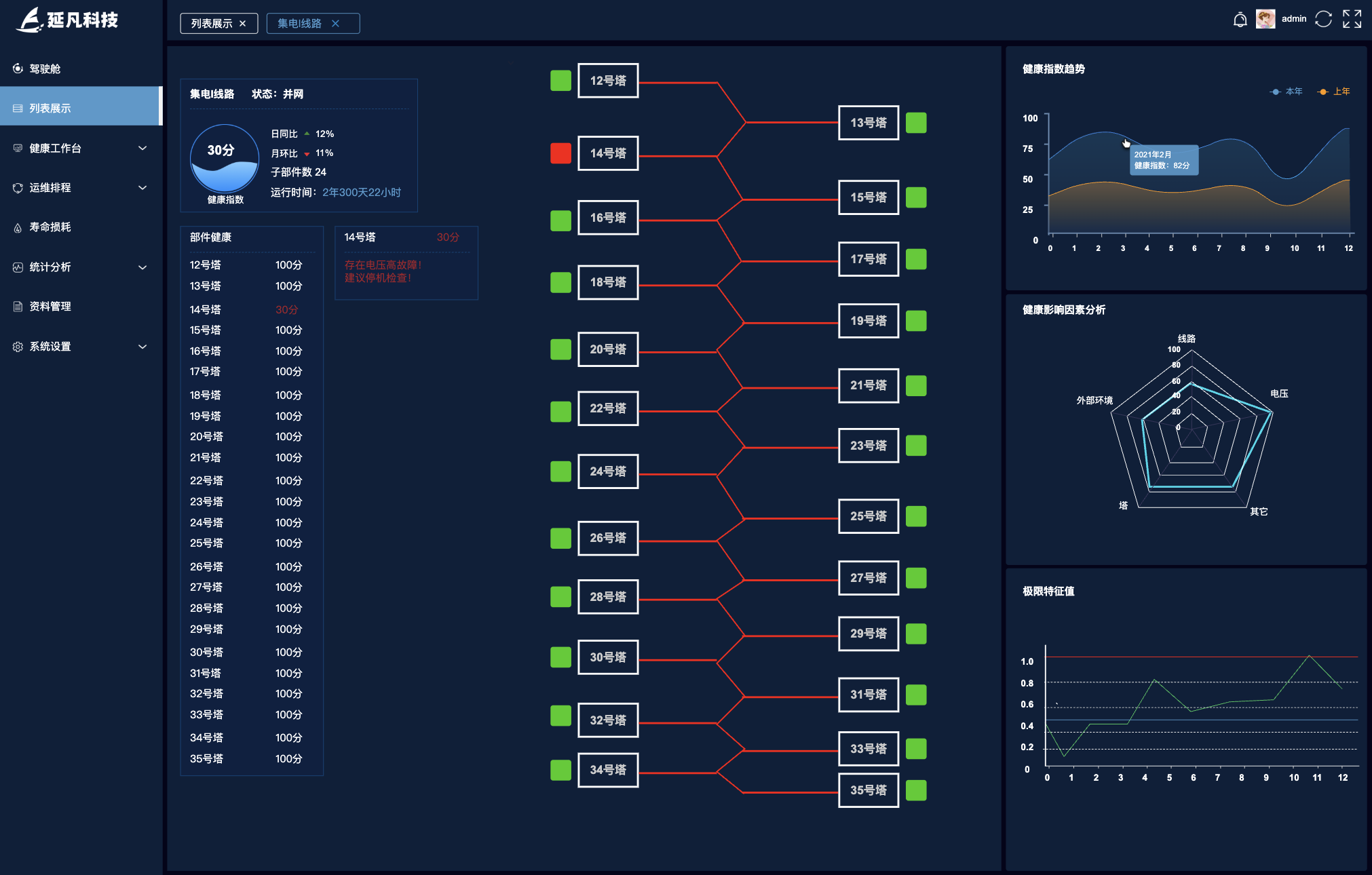 - 无人机巡检:搭载红外相机检测叶片温度异常(可能隐含裂纹);视觉识别叶片表面裂纹(精度达 0.5mm),自动生成损伤报告;