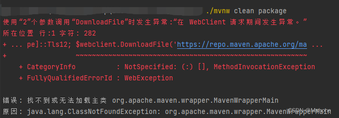 【已解决】java SpringBoot “./mvnw clean package”错误: 找不到或无法加载主类 org.apache.maven.wrapper.MavenWrapperMain