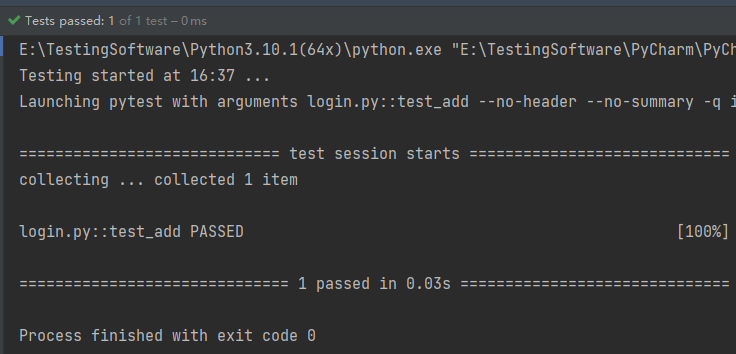 2、pytest命令行:要进入项目的根目录运行pytest命令,pytest命令会自动收集运行指令时候,所有子目录下符合要求的测试用例,例如test_login.py,模块且以test开头,函数test开头,类也是如此 -