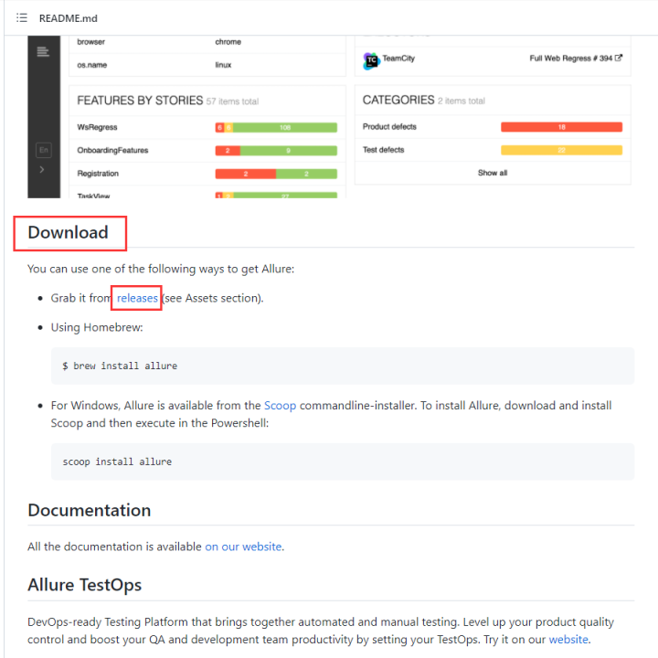 万能百度搜索allure进入到GitHub下载。 找到Download的字眼,并在其中点击releases