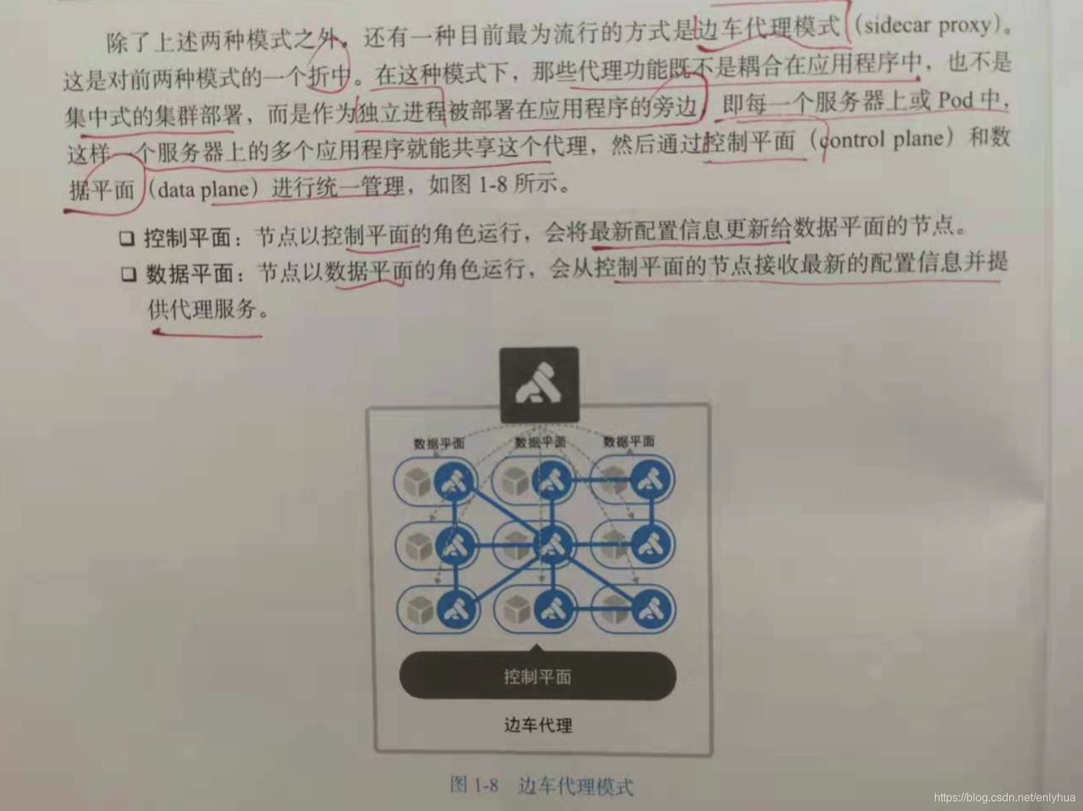 每一个服务器上或pod中,这样一个服务器上的多个应用程序就能共享这个代理,然后通过控制平面(control plane)和数据平面(data plane)进行统一管理。