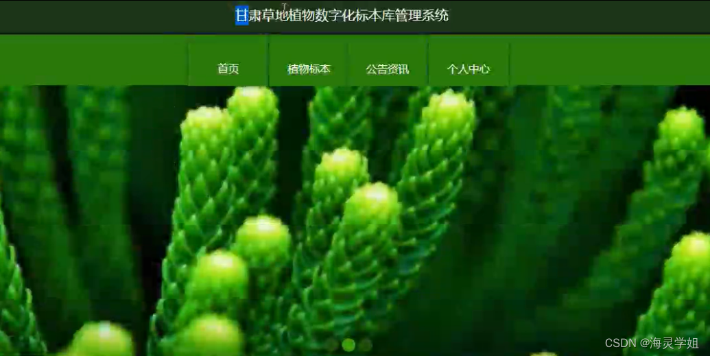 甘肃草地植物数字化标本库管理系统,在系统首页可以查看首页,植物标本,公告资讯,个人中心等内容,并进行详细操作;如图5-1所示。