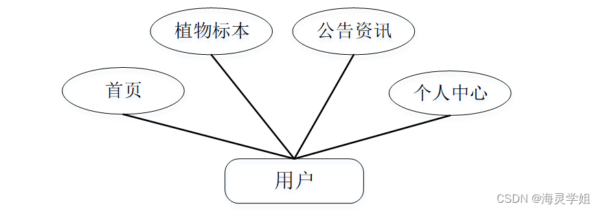 (b)用户;进入系统可以实现首页,植物标本,公告资讯,个人中心等功能。用户用例图如图3-2所示。