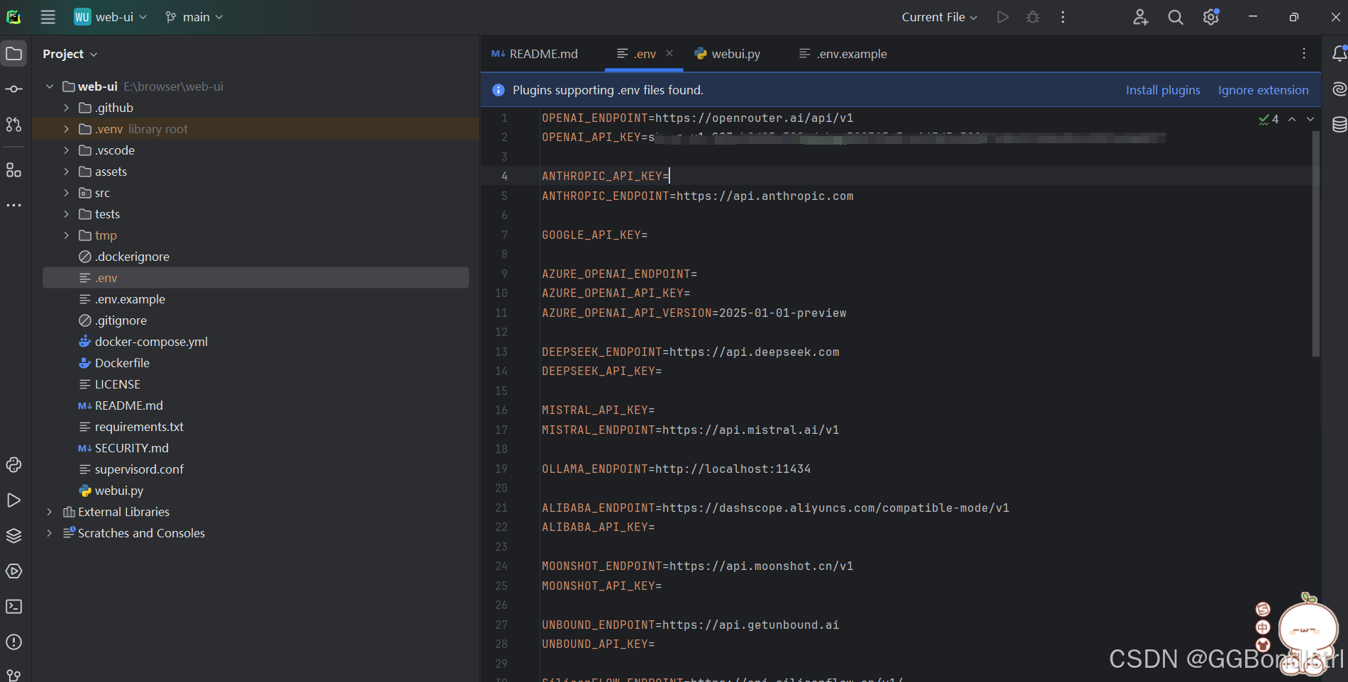 然后将我们的openRouer的地址复制到我们.env格式文件的openai中(因为格式是符合的)