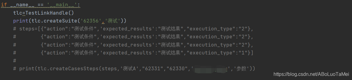 首先,登录到testlink上,然后点击个人设置,生成一个key。操作方法如下:以下是我们的一个工具类对testlink进行增删改查创建case、step参数封装最后说明一下,关于这个62365、62331之类这些Id, 在点击某个项目或用例的时候,就能够看到。当然也可以通过getProjects获取到所有项目的id。...