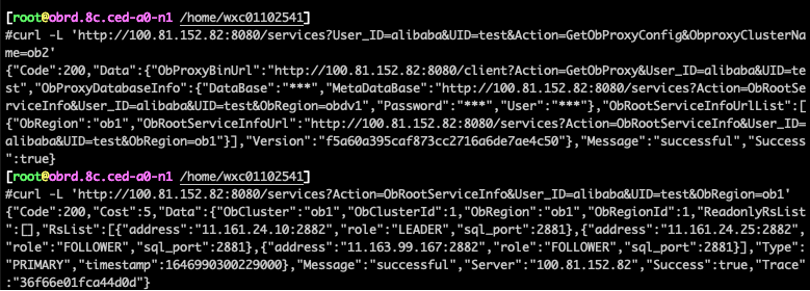 由上图可以看出,obproxy 启动参数中传入 obproxy_config_server_url 这个参数,obproxy 请求这个地址,可以获取到可以连接的 OceanBase 集群列表,已经 OceanBase 集群的config server 地址,再通过访问 OceanBase 集群的 configserver 地址,得到真实的 rootservice 地址。