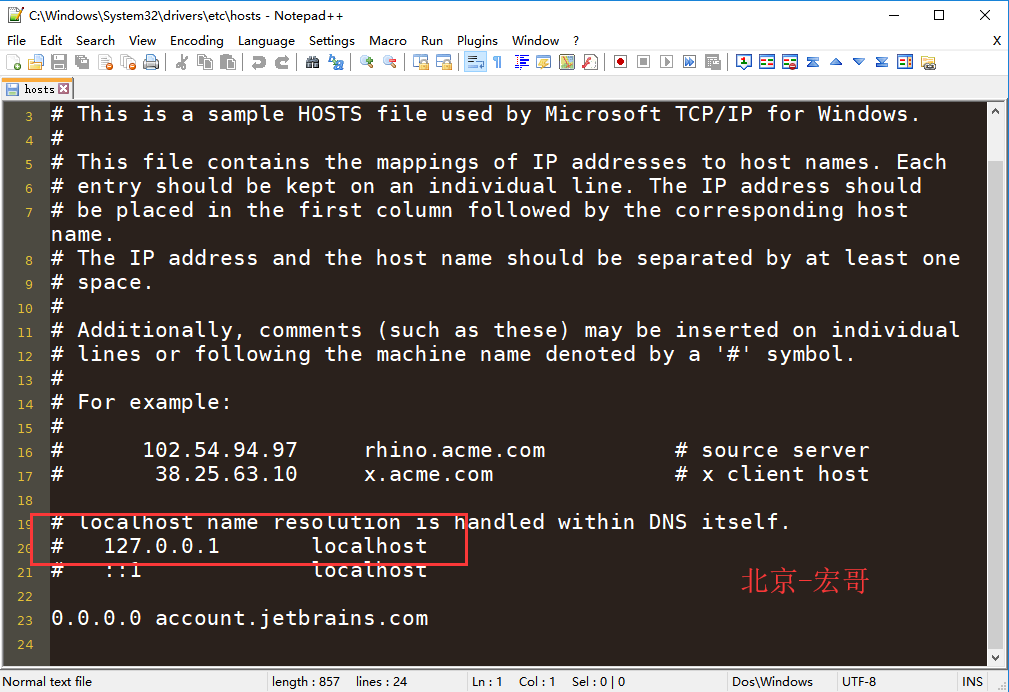 “本地”,你一定还想到了localhost,打开你的hosts文件(右键选择用notenotepad++打开):