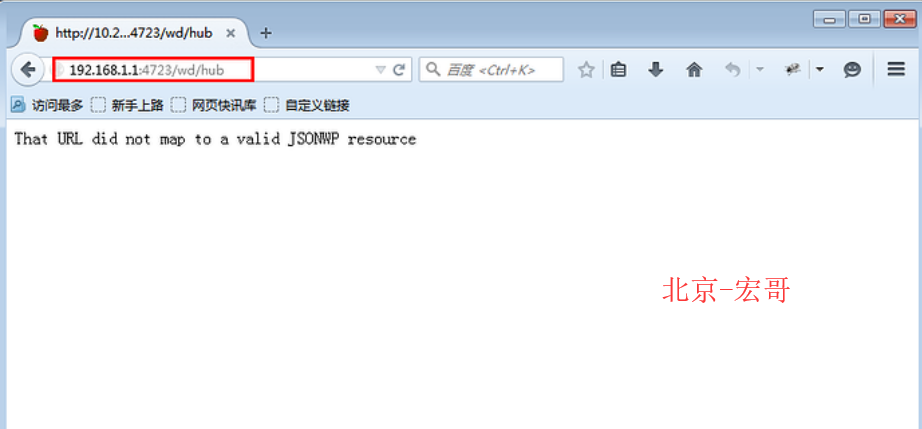 1.在自己工作电脑上打开浏览器输入:192.168.1.1:4723/wd/hub。这一步很重要,一定要看到如下界面,确认远程链接成功.
