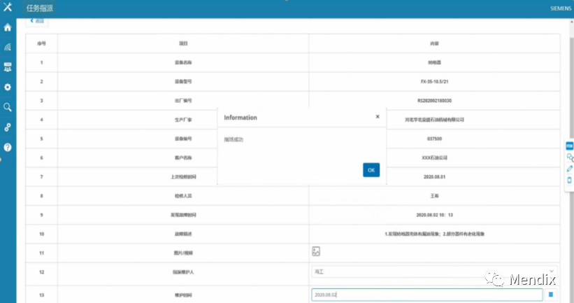 利用Mendix开发的“维修派工”,可以通过手机和PAD等移动端在查看故障汇总后直接对故障进行维修任务指派,基于所需技能和培训,指派维修人员,进行维修任务派工,及时地处理维修任务。这里Teamcenter将与Mendix保持关联和同步。