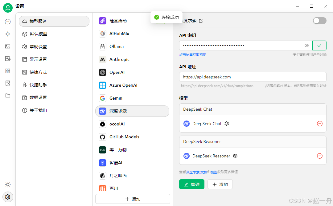 注册个账号,因为需要配置 Embedding(嵌入式模型),注册成功后你会获得14R(2000W Token)1、我是deepseek官方申请的,现在因为各种原因 不开放了,需要的小伙伴可以找我要可以,将 复制的API秘钥 填写进去,点击右边的检查,会提示成功还是失败,当提示成功表示可以使用。第二种选择是硅基流动,首先去。客户端,官网提供了全平台。