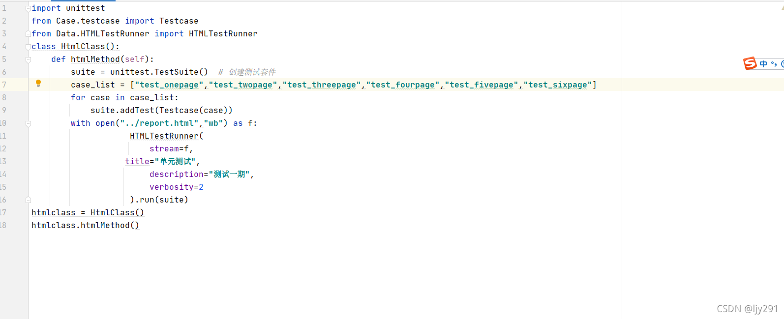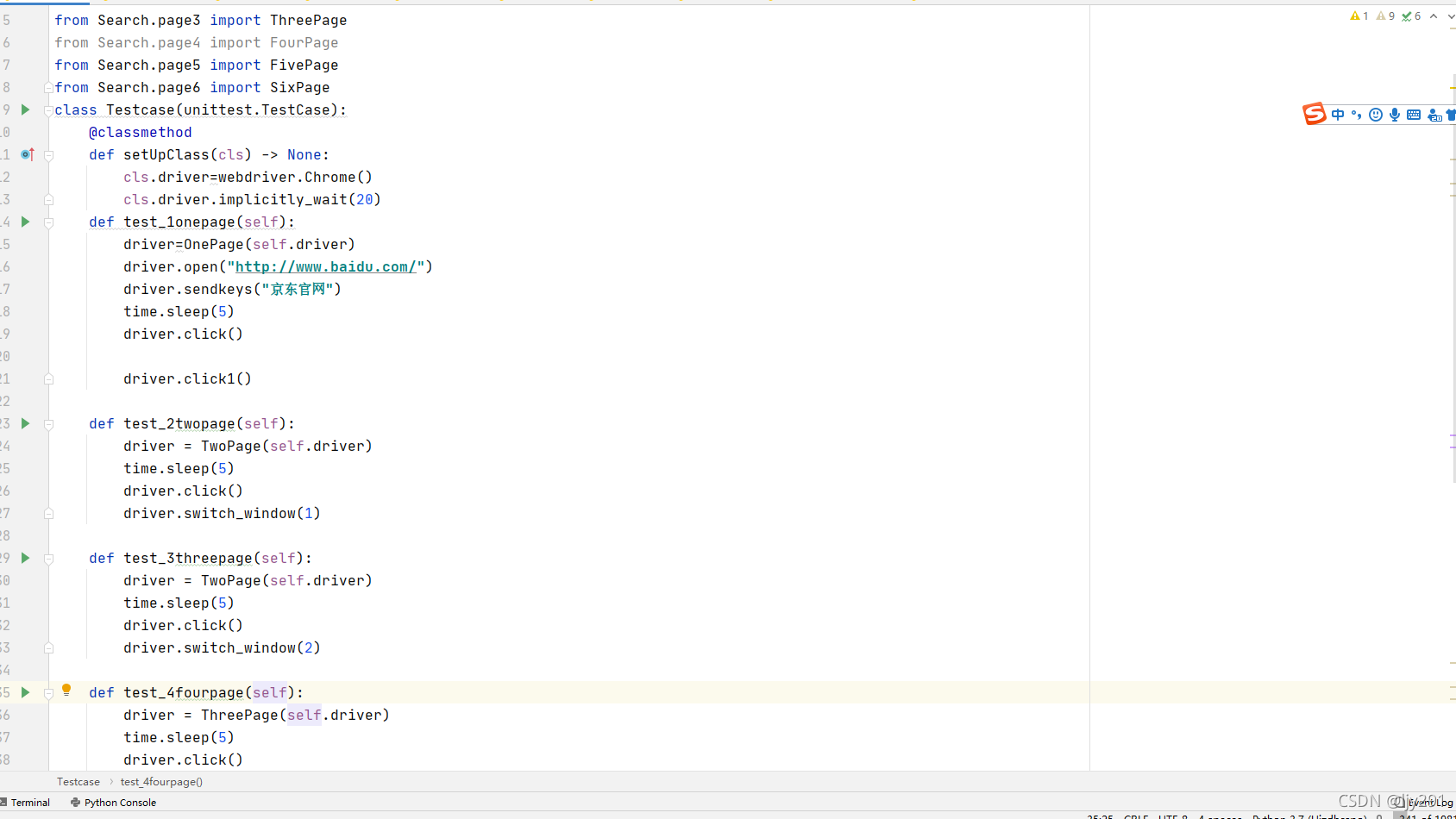 3.TestCase继承unittest.Testcase类,并依赖page类,从而实现相应的测试步骤