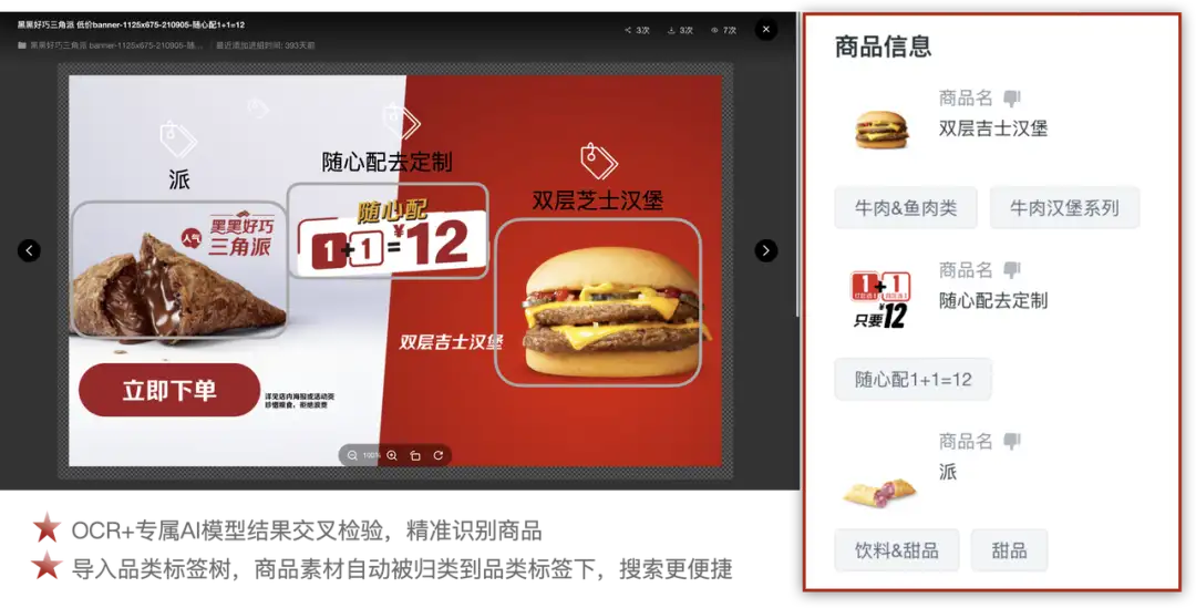 示例 DAM已具备的图像OCR识别技术:自动识别物体→自动匹配标签→自动打标