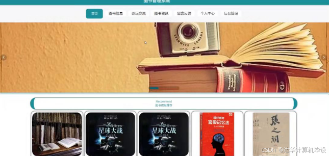 首页展示:提供系统概览,包括图书推荐、最新资讯等内容。