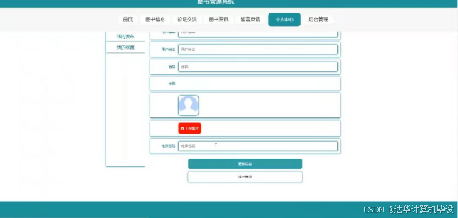 个人中心:用户可以查看和修改个人信息,管理借阅记录。