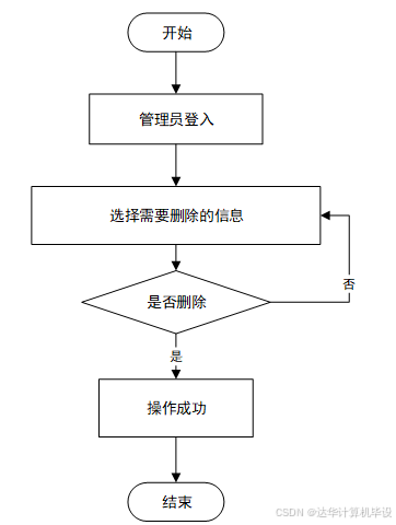 运行的主要流程为,登入管理员用户名,因为只有管理员才有权限进行该操作,然后查看所有注册用户的信息,选中需要删除的用户信息,然后确认删除,即为完成,系统将修改的数据更新至数据库,主要过程如图3-1所示: