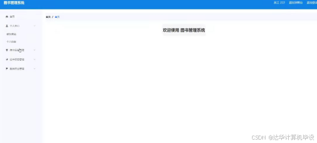 员工登录进入图书管理系统可以对首页,个人中心,借书信息管理,还书信息管理,缴纳罚金管理等功能进行相应操作,如图5-18所示。