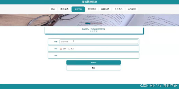 论坛交流,在论坛交流页面可以查看标题,类型和内容等详细内容,并进行发布帖子或重置操作,如图5-3所示。