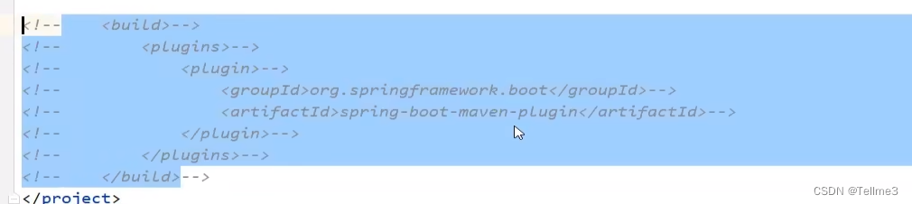 第一步:若是将其maven打包插件注释掉,分别打包比较两者文件