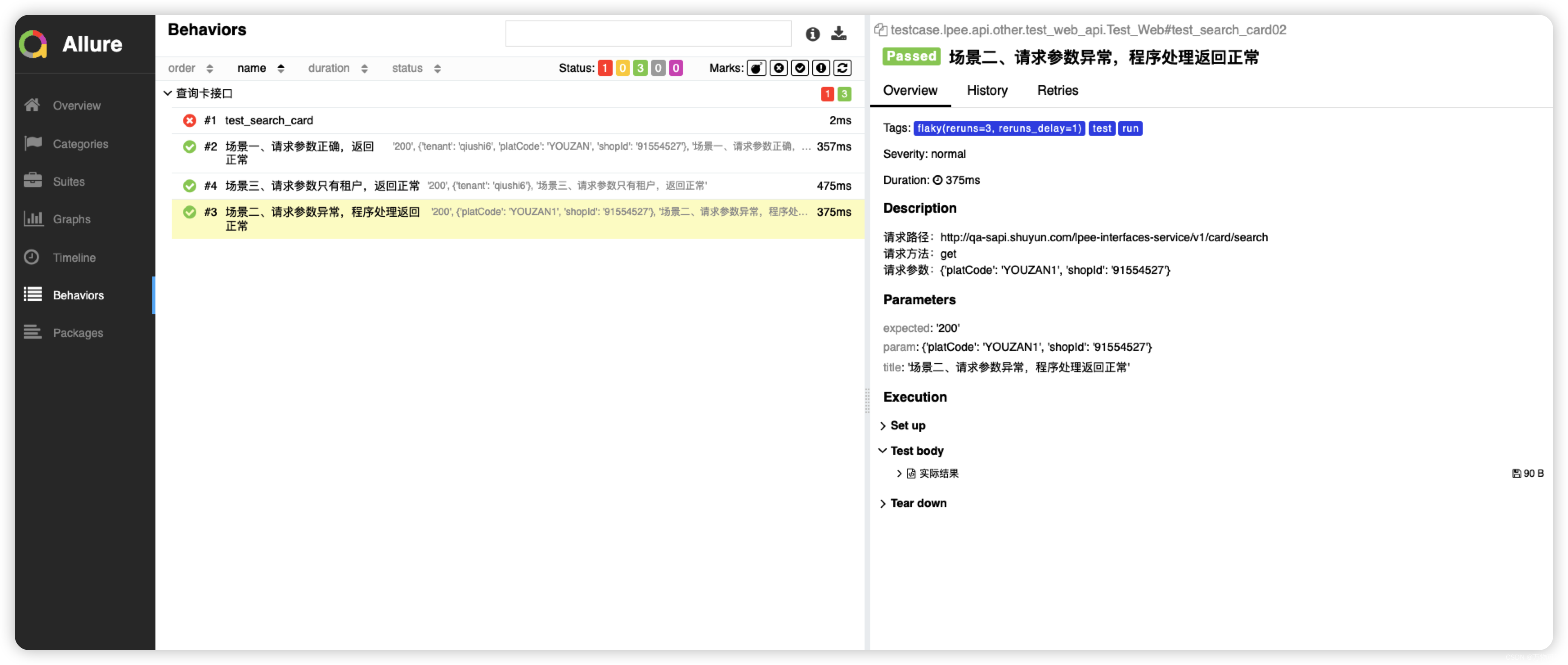报告可读性强,用例场景层级清晰,接口报错可以快递定位