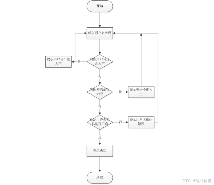 首先是系统的登录页面。用户进入页面后,可以进行登录和注册操作。点击登录后,会弹出一个登录提示框,向用户传达信息:需要输入用户名和密码才能进行下一步操作。用户完成输入后,系统会将输入的信息提交给后台,并与数据库中的信息记录进行比较判断。判断主要包括三个方面:检查用户名是否为空、检查密码是否为空以及检查用户名和密码是否匹配。只有当以上三个条件同时满足,即数据库中的信息匹配正确时,登录才视为成功,用户才能进行后续操作。如果其中任何一条条件不满足,系统会提示登录错误,需要重新登录。系统登录流程图如图3-4所示: