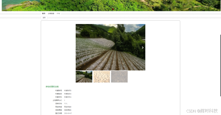 土地信息:在土地信息页面的输入栏中输入村委姓名或现金收益进行查询,可以查看到土地信息详情,土地信息页面如图5-3所示: